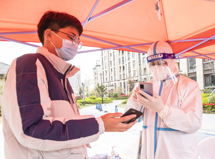 活躍在疫情防控一線的“財(cái)務(wù)人” 沈揚(yáng)是園區(qū)城發(fā)公司財(cái)務(wù)審計(jì)部總經(jīng)理,3月29日23時(shí),當(dāng)孩子們已進(jìn)入夢(mèng)鄉(xiāng),他和在蘇宿鄰里公司財(cái)務(wù)部工作的妻子施桂俠先后接到疫情防控緊急集合電話,夫妻倆迅速?zèng)Q定將三個(gè)孩子交給70多歲患有冠心病、裝著起搏器的父親和雙腿裝著人工膝蓋的母親來照料,義無反顧地投入到疫情防控一線。沈揚(yáng)是包保小區(qū)的點(diǎn)位長(zhǎng),連夜統(tǒng)計(jì)整理包保點(diǎn)居住人數(shù)、設(shè)計(jì)表格、領(lǐng)取防疫物資、布置點(diǎn)位人員,忙完這些,天已放亮,他又接著開展核酸檢測(cè)工作。檢測(cè)完成后,他又忙著統(tǒng)計(jì)分析數(shù)據(jù),優(yōu)化工作方案,申領(lǐng)第二天核酸檢測(cè)物資,又到夜里2點(diǎn)多,他稍瞇了會(huì),四點(diǎn)多又趕到點(diǎn)位進(jìn)行新一輪核酸檢測(cè)布置。妻子是登記員,雖然在同一個(gè)小區(qū),只有吃飯時(shí)能見上一面,相互交流一下家里的情況。已四五天沒回家的他們,只能空閑時(shí)通過視頻安撫一下兩個(gè)幼兒,鼓勵(lì)和督促一下即將中考的大女兒。