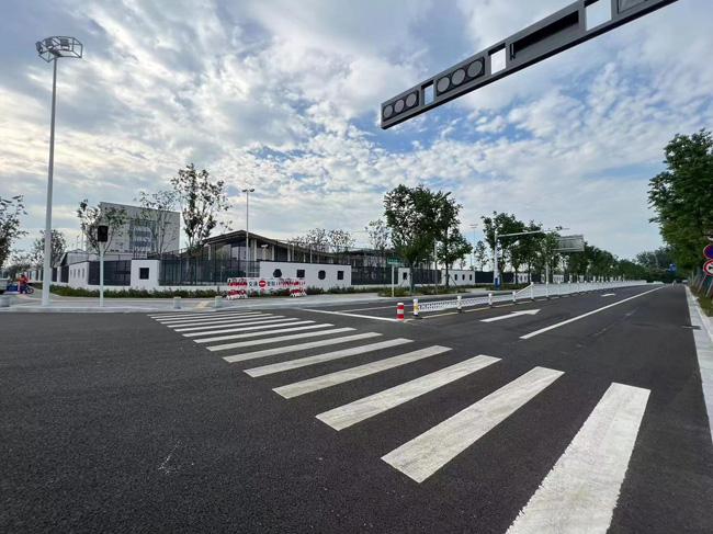 本次工程累計(jì)安裝隔離護(hù)欄1236米,警示柱12套,震蕩標(biāo)線713平米,夜間自發(fā)光三角警示牌19套,停車場指示牌2套,可拆卸防撞柱10套,臨時(shí)封閉移動(dòng)護(hù)欄100m。