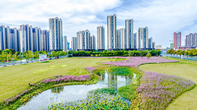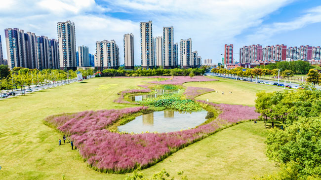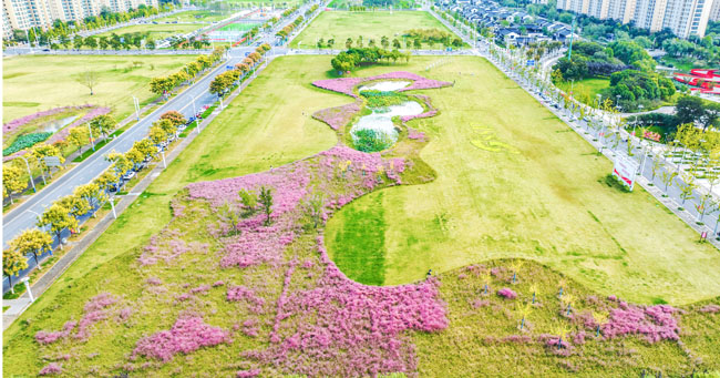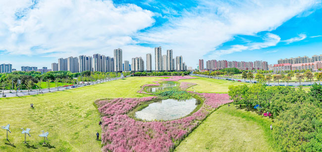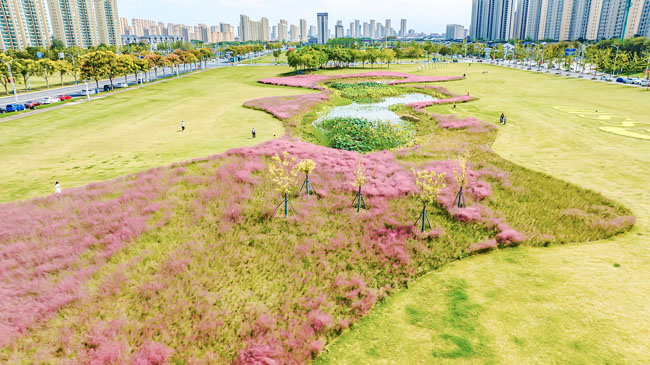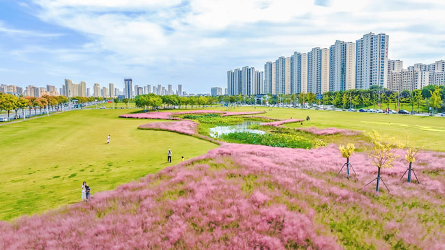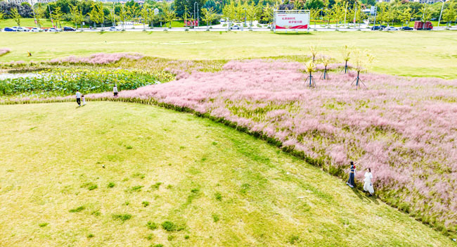 2023年10月1日,蘇宿工業(yè)園區(qū)蘇州公園北側(cè)綠地的粉黛亂子草盛開(kāi)了,一片片粉色花海如夢(mèng)似幻,吸引游人前來(lái)觀賞,樂(lè)享國(guó)慶假期。