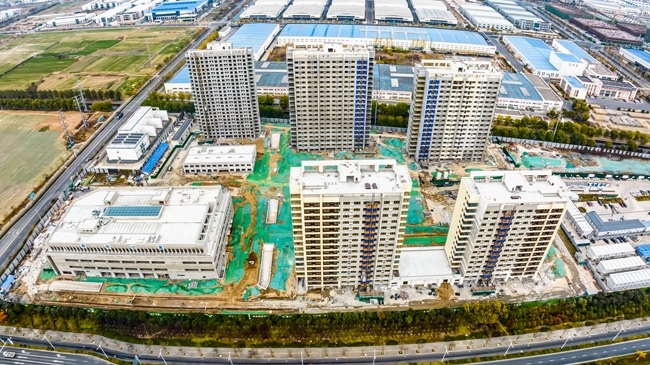 蘇宿工業(yè)園區(qū)為滿足入園企業(yè)集中住宿需求,讓企業(yè)擁有更多的精力專注于生產(chǎn)經(jīng)營(yíng),建成第一集宿區(qū)-園區(qū)公舍,在建第二集宿區(qū)-青年公寓。青年公寓一期項(xiàng)目建筑面積約13.6萬(wàn)平方米,含藍(lán)領(lǐng)公寓、白領(lǐng)公寓、商業(yè)樓,項(xiàng)目建成后可入住員工約8000人。