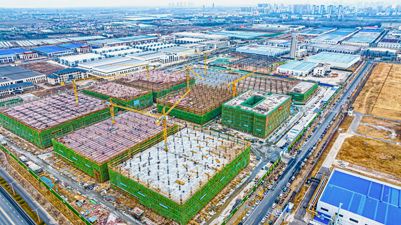2023年12月26日,蘇宿工業(yè)園區(qū)智慧信息產(chǎn)業(yè)園項(xiàng)目施工現(xiàn)場(chǎng),工作人員正在有序施工。