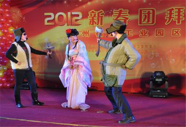 團(tuán)拜會(huì)在《年輕的朋友來(lái)相會(huì)》嘹亮的歌聲中拉開序幕,園區(qū)干部職工、客商代表自編自導(dǎo)自演的《招商狂想曲》、《蘇宿論壇》等一個(gè)個(gè)精彩的文藝節(jié)目,博得了與會(huì)人員陣陣掌聲,愉悅、喜慶的氛圍讓大家感受到園區(qū)一家人的溫馨。