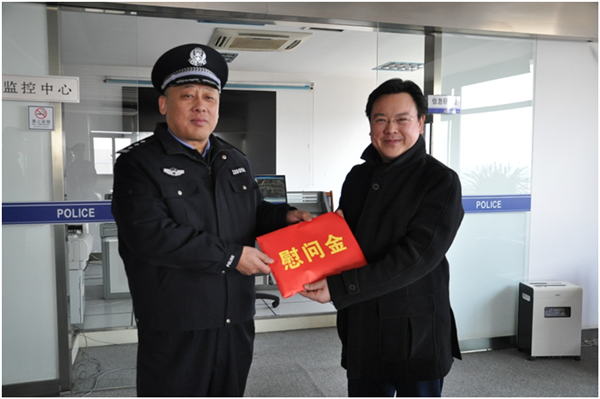 在園區(qū)公安分局,方文浜先后參觀了園區(qū)派出所、公安分局辦公區(qū)和園區(qū)治安監(jiān)控中心,對園區(qū)公安分局的工作表示了肯定,對分局各位干警的辛勤奉獻(xiàn)表示感謝,并送上了慰問金。