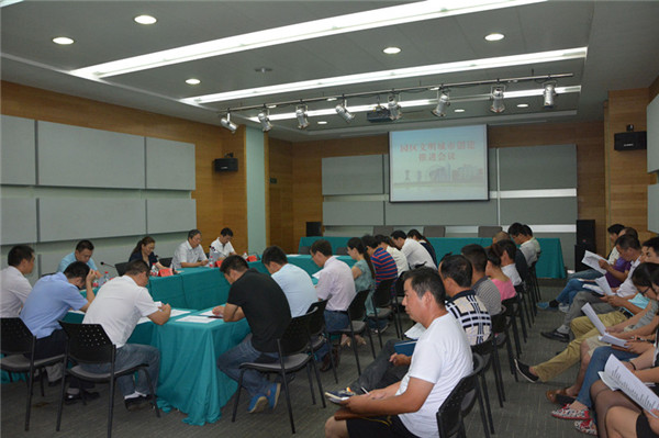 園區(qū)五城同創(chuàng)工作領導小組全體成員,園區(qū)社工委,部分工業(yè)企業(yè)、餐飲單位、建筑施工單位負責人參加會議。