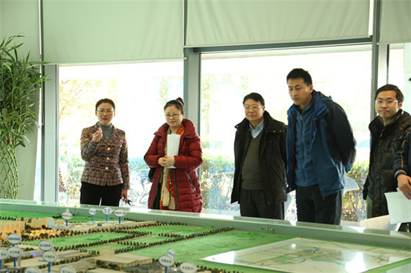 調(diào)研組先參觀了管委會一樓沙盤,駱敏詳細(xì)介紹了園區(qū)的建設(shè)背景、發(fā)展情況。