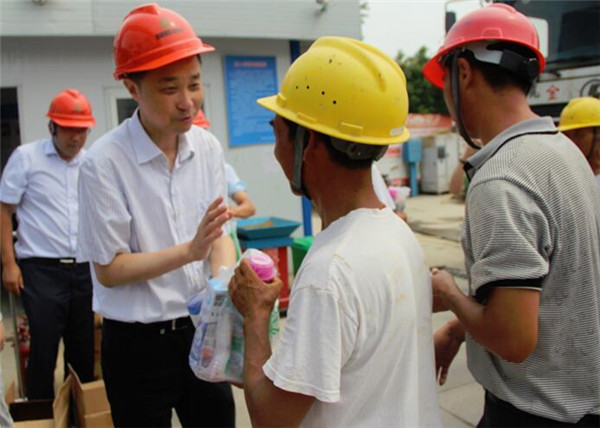 許紹杰仔細(xì)詢問(wèn)了一線工人工作、生活情況,給他們送上毛巾、礦泉水、沐浴露等防暑降溫用品,并要求施工單位根據(jù)夏季高溫氣候特點(diǎn)及時(shí)調(diào)整作息時(shí)間,認(rèn)真落實(shí)防暑降溫措施,充分保證工人的休息,防止中暑,確保施工安全。
